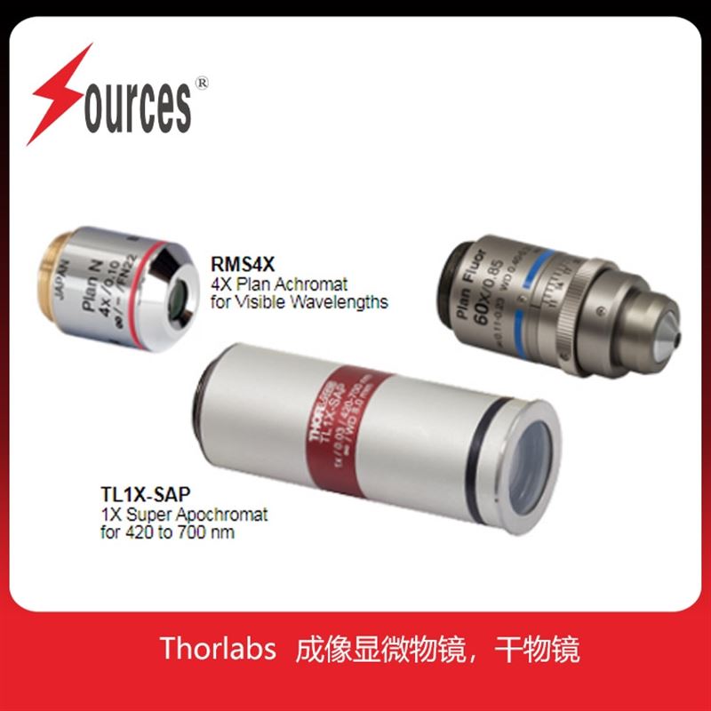这些经过无限远校正的可见光成像显微物镜可提供4倍、10倍、20倍或40倍的放大倍率。由于高数值孔径(NA)和高放大倍率,它们非常适合聚焦或准直激光。由于这些奥林巴斯物镜在整个可见光谱范围内具有衍射极限性能,因此非常适用于成像应用。另外,它们能把光聚焦成一个衍射极限光斑,因此可将单色光或宽带光有效地耦合到波导或光纤中。这些物镜都适用于明场显微镜,而RMS10X,RMS20X和RMS40X在暗场成像也提供了出色的性能。